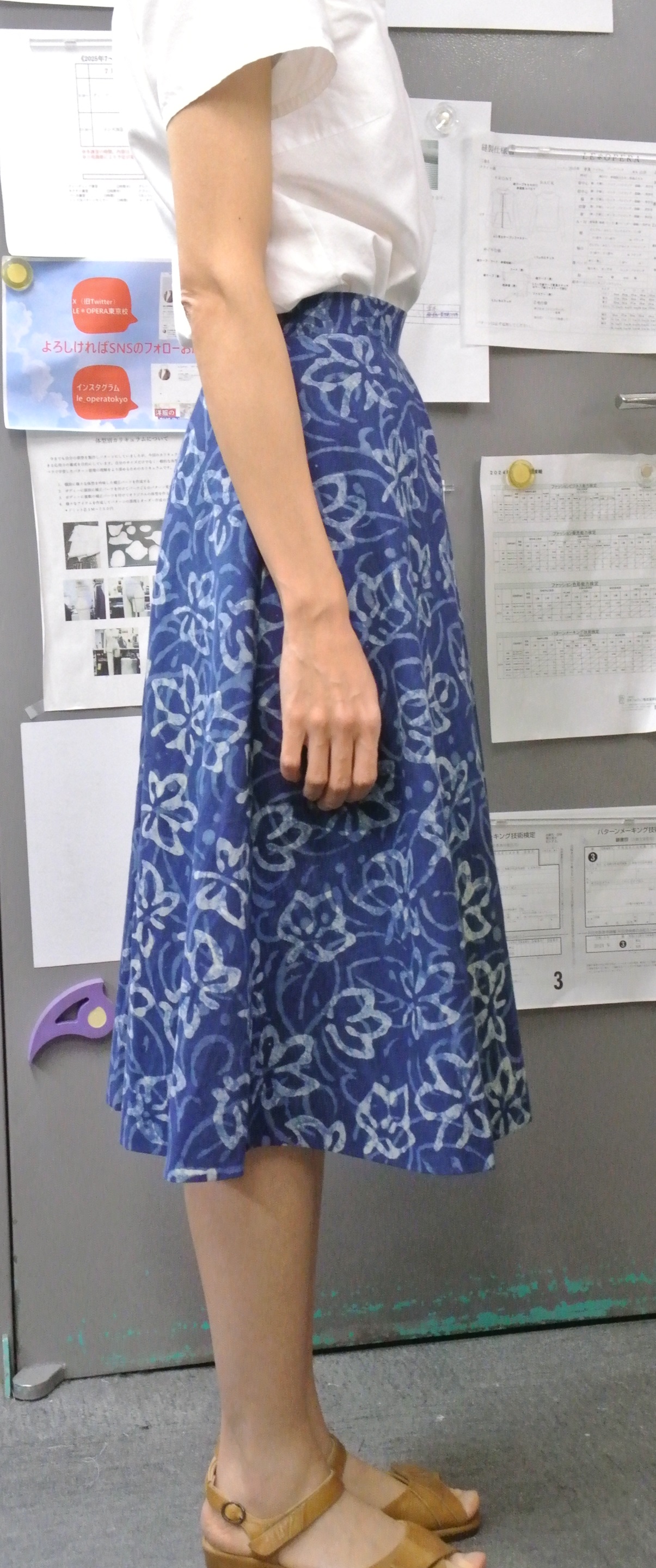 今回作製したフレアスカートは原型の時点で不具合をしっかり修正して作った物なので、フレアが均等に出ていますね(^^♪