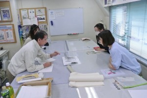今回は外部の方も参加され、会社でパンツパターンを引く上で困ったことなどをお聞きしながら、なぜ股ぐりの形状がこういう形なのか、寝かしはなぜ必要なのか、などパンツの基本的なメカニズムについて丁寧に説明しました。