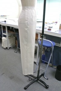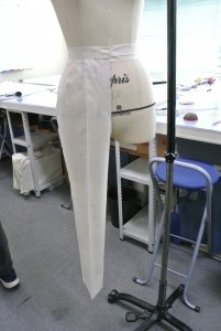今回は前回タイトフィットシルエットになるようにつまんだダーツを作図に反映し、再びトワルを組んでいきました。くせとりも前回とは少し異なるアイロン操作でよりヒップにフィットしたトワルの作り方を説明しました。