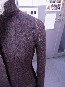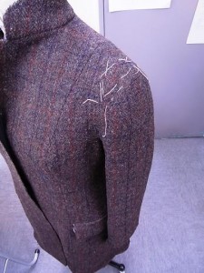 肩パットを大分作り込んでいるので、ドロップショルダーですが、丸みをしっかり出すことが出来ています。