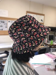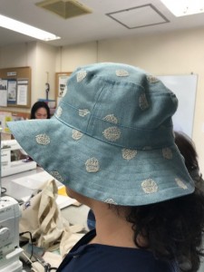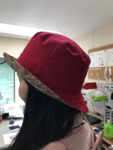 さて、左の方の作品はとってもかわいらしく個性的な鳥柄ハットは店頭には並んでないオリジナリティがありますね。右の方は表はシンプル、内側にリバティプリントを使い、上品な中にも遊び心を感じるデザインの仕上がりの帽子にされました!