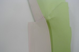 バストダーツは衿ぐりで3°開いて4分の1残しで処理しました。