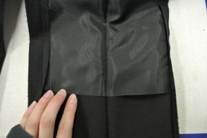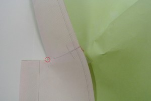 ウエストダーツは、後中心10mm、後ろの切替40mm、脇で16mm、前のダーツで12mm取っています。