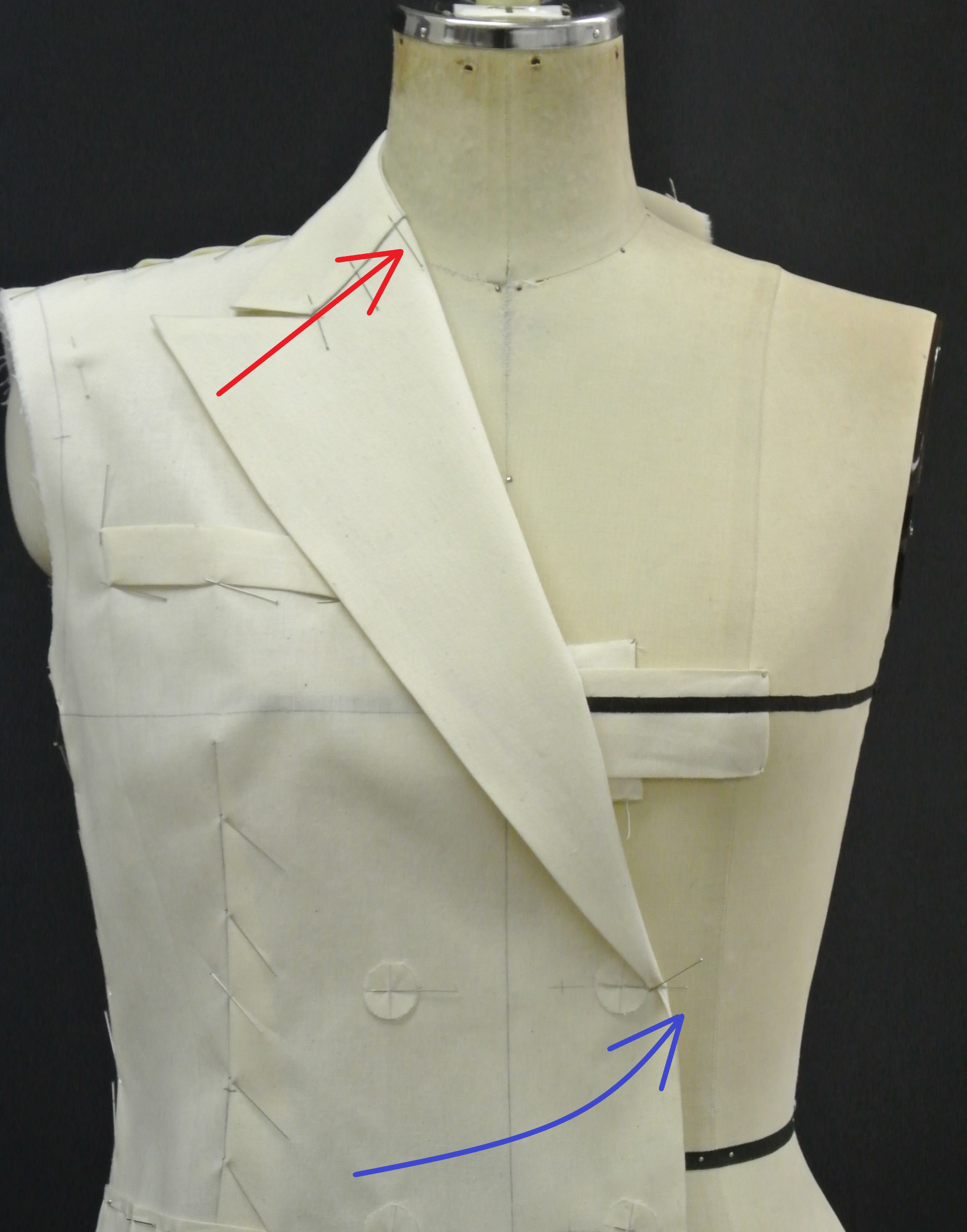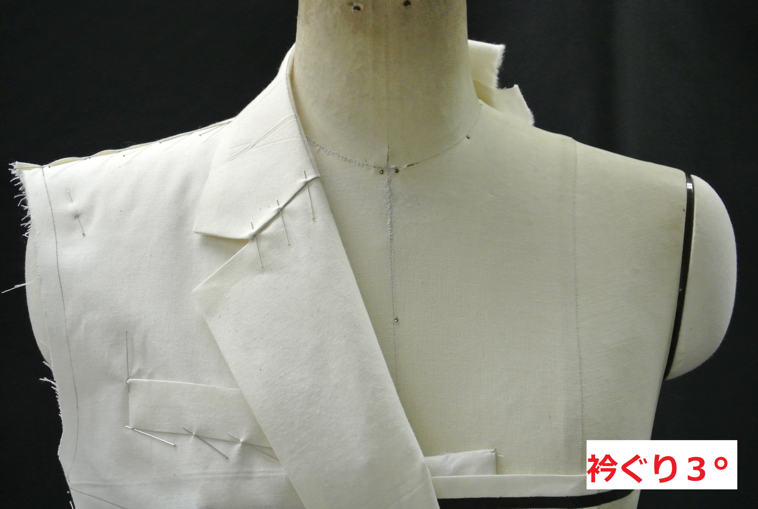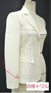 ラペルと衿外周り、衿先の角度、ゴージラインの位置などのバランスを取る練習は本番までに何度もして試験対策をしておくようにしましょう!