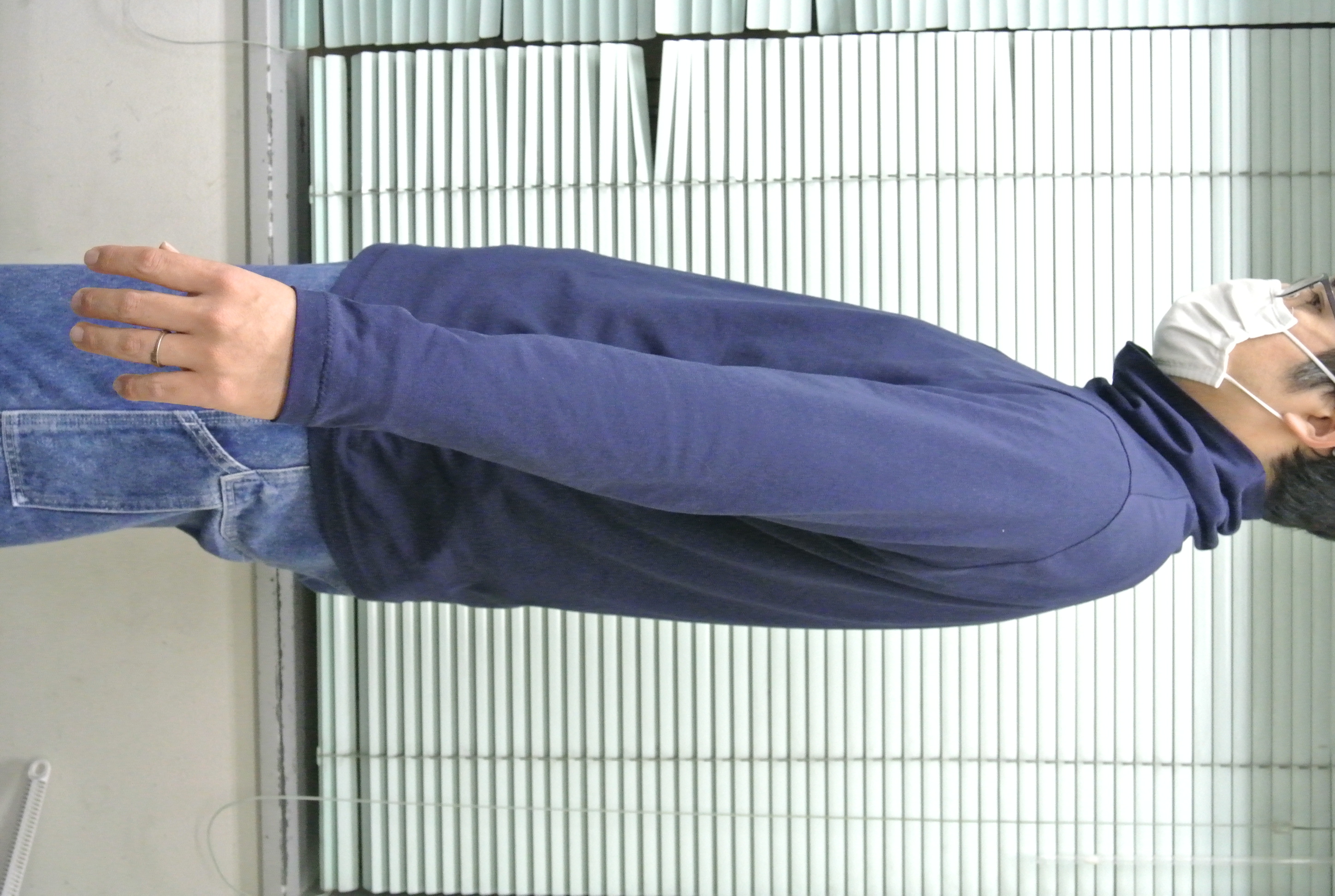 ほとんど同じのように見えますが、後ろと裾回りに少しゆとりが生まれました。腕はかなり前に動かしやすいです