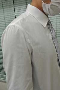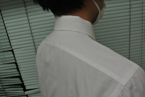 衿ぐりをかなり伸ばしたので衿自体が首にフィットしています。ただ窮屈さの原因でもあります・・・