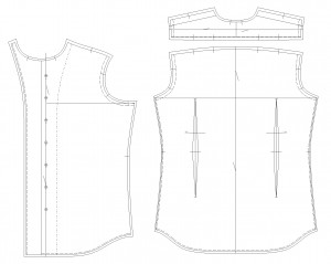 袖山はジャケットみたいです。イセの量が多いので、縫製が非常にし難いかったです。工場さんは絶対やりたくないだろうなあ。やはり手縫いならではのパターンですね。