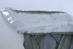 恐らく縫い目を入れて硬くする事で、1枚衿でも狙った返り線で衿を返す事が出来ると言った意図があるのかなと思いました