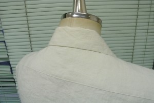 今回も1型目と同様に着丈が長いデザインなのでラペルの大きさ、ボタンの間隔、ポケット位置の設定が難しく私も何度かトワルを組み直しました