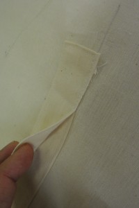 でかい方(上前立て)を身頃に裏から地縫いします。