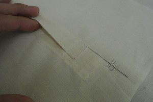 地縫い無しのステッチ(挟んで縫う)です。コの字に縫います。