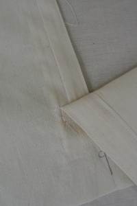 身頃を下前立てで挟んで(下端の縫い代は割っておきます)
