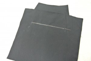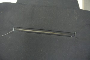 ドレス系の表にステッチが無い場合はこの工程は飛ばして口布真ん中に仮止めのステッチを入れるだけです。(横ステッチ)
