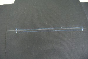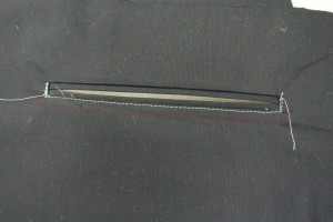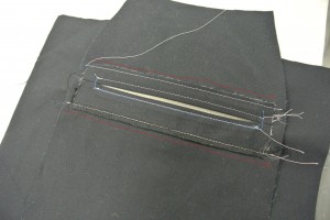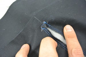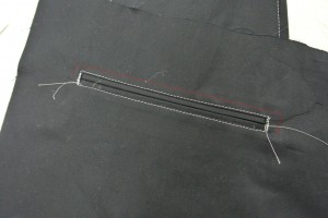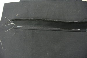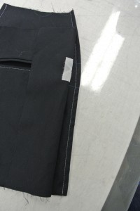 オリジナルですが、私はカジュアルのときのみやっています。あとでカンヌキを入れるのでこのステッチが見えないようになります。