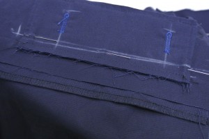 目がかなり詰まっているので伸び止めなど芯は無しでいきました。(かっちかちの生地なので貼りませんが通常前端、ポケット口には貼ります)