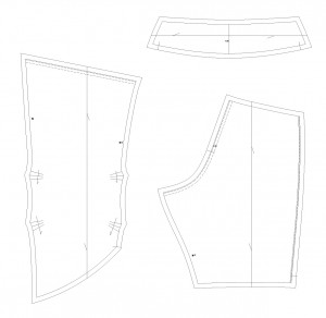 サンプルはタックではなくダーツでした。今回は表地がウールで伸びやすいのでゆとりとして考えてタックにしています。これは正解だったと思います。