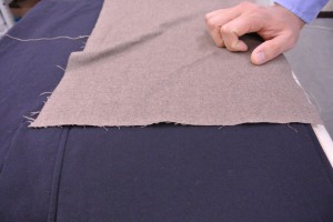 ひとまずアイロンをかけますが、ウールのギャバはかなりテカリが出るので、厚手の当て布をしました。