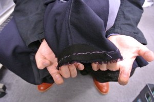 ちなみにこのコートは中にふらしの綾スレキが見返し、裏地の前後ウエスト上くらいまで入っていました。中の生地が固いので表の生地が柔らかくてもそこまで形は崩れていないですね。