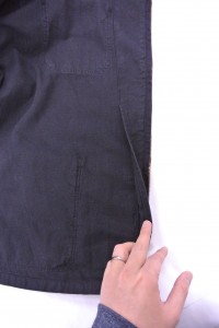 中を見てみると、綾スレキの胸増し芯がふらされていたのですが、ところどころほつれが・・・気になるところをリペアしておきました。軍ものは中の作りが雑・・・