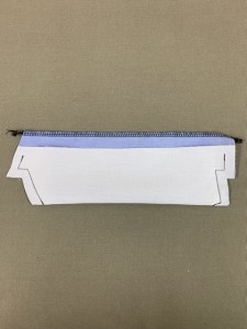 表からコの字に口布側にコバステッチをかけ、見返しおさえのステッチもかけます。