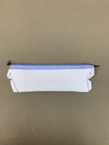 ひっくり返して端にステッチをかけます。今回は途中で止めています。