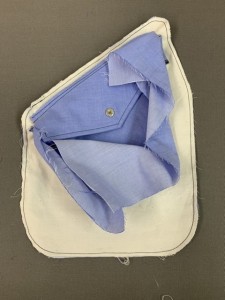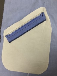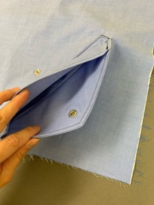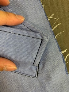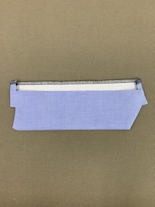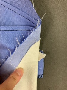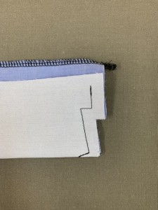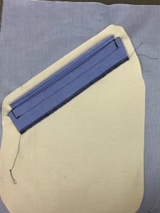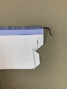 ややこしい口布です。見返し端にロックをかけておいて、写真のように縫います。