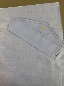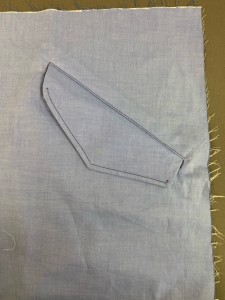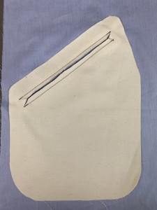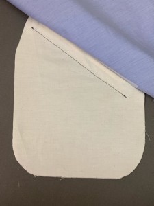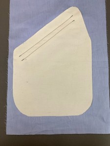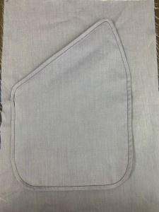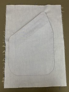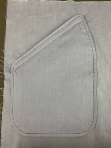 パターンが鋭角になると縫い代が集まってしまうため、微妙に角を落としていました。パターン的にはややこしいので、ちょっとしたテクニックだと思って貰ったらいいかなと思います。