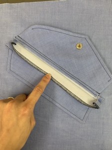 できたらフラップ口布、裏には袋布をセットし、上下縫います。