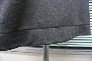 あとは、袖口と裾ですが、太幅(45mm)の始末にしたおかげで少し固くなりました。