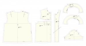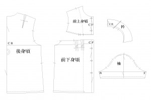地の目・わのマーク・CF・CB・見返し線・合印・イセマーク・パーツ名称・ダーツの倒し方向、ステッチ、必要と思われる記号は忘れずに記入して下さい。