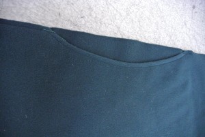 縫製の時衿を地縫いするときだけはかなり気を使いました。かなり伸びやすい生地で縫製している間に衿ぐりは伸びてしまうことが多いので、地縫い前に衿ぐりを少しいせ込んでから縫製しています。