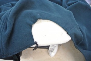 裏↑向こう布はフリースにしています。温かさとシルエット保持を兼ねています。