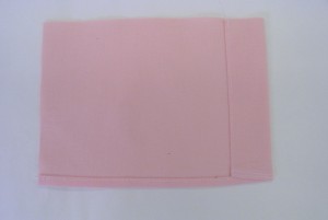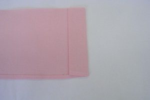 最後は前端の三つ折りステッチをかけておしまいです。角は斜めにステッチです。