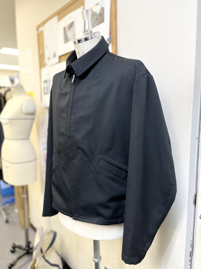 始めはメンズボディで作ってしわのなかったパンツも自分で着用すると大きな違いが合って、細かい修正は先生と一緒に作っていきました。また、ジャケットにも言えることですが、ファスナーやポケット、全体の縫い順など、仕上がりをイメージして縫うことが初めは難しく、縫製工場の技術の高さを改めて感じました。
