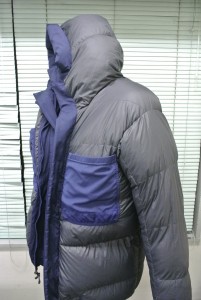 しかし苦労しました・・最初から作ったほうが多分ラクなんじゃないだろうか・・・でもダウンに関して色々考える事が出来たのは大きかったです。主には「表と裏の差」ですね。ダウンを入れるとそれだけで「膨らむ」わけですから縦と横に生地が「持ち上がる」わけです。ダウンの量が多ければ多いほどその量は増えるわけです。ものによっては4cほど持ち上がったりします。