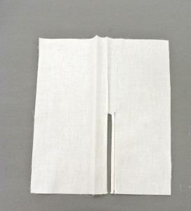 その後三角布の表側に折り返し、もう一方の縫代は裏側に折り返します