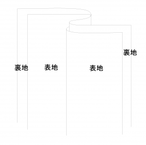 ただ、裏打ちで仕立てる場合は図のように一緒にタックを取ります。