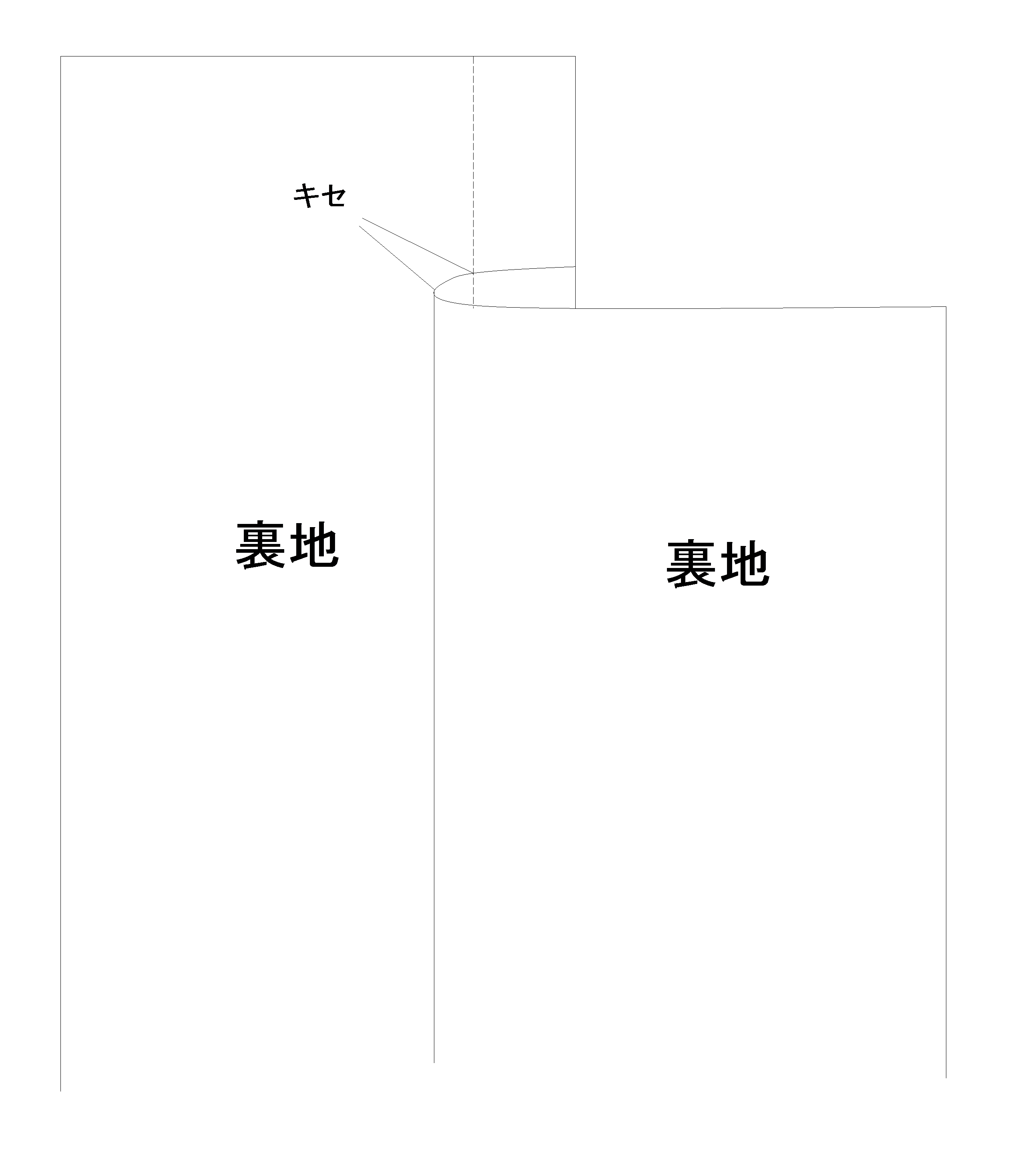 例えば写真のような脇の切り替えで考えると、ふらしは図のような状態で、数ミリのキセが入ります。