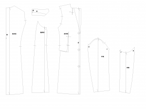 3面体のドクターコートになりますが、一般的な3面体のコートの形と比べた時にどのようにパターンの形状が異なるのかについて見ていきます。この袖の形について今回は考えてみたいと思います。