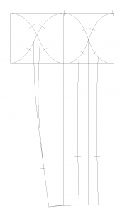 このように、ひねりを入れることで、袖山が低くても袖口をこのように身頃に近づけることができるうえ、袖全体が立体的になり、メンズなどでよく見られる腕が強調された形状も作ることができます。