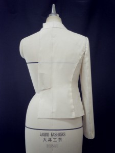 ショートジャッケットの場合、本体のウエストラインうんぬんではなく、デザイン画の丈感のバランスに合わせてウエストの削る位置を決める必要がありますが