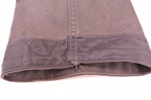 身頃のカドは三つ折のダブルステッチです。