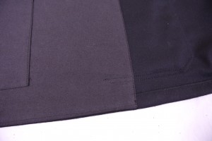 ポケット口は厚み軽減でスレキに変えて縫いました。ついでに角も生地を減らしています。大量なロット数ならパターン的に難しくなるのでここまで丁寧にやらない方がいいかもしれませんが